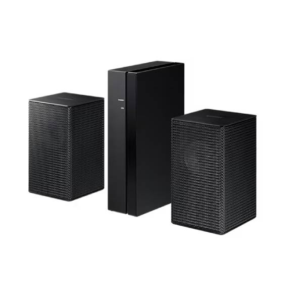 The Samsung Sound+ Soundbar Wireless Rear Speaker Kit SWA-9000S. Designed to enhance your Sound+ soundbar, this kit brings cinematic surround sound into your living room, creating an immersive audio experience that puts you at the center of every scene. Whether you're watching movies, listening to music, or gaming, the SWA-9000S delivers crisp, detailed sound that elevates your entertainment.
