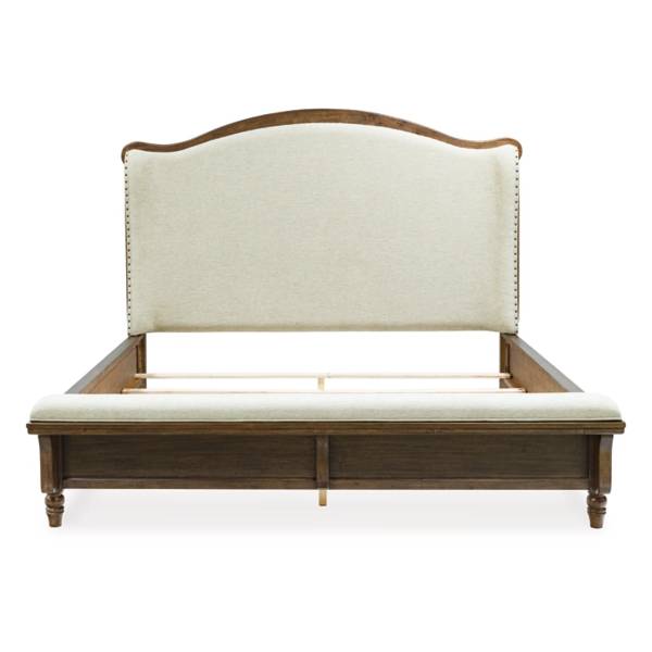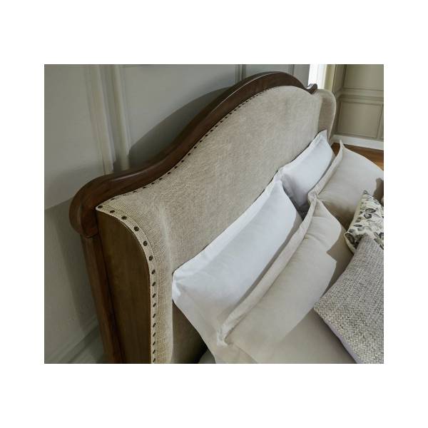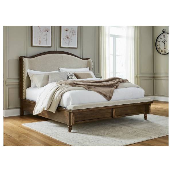 The Sturlayne California King Upholstered Panel Bed seamlessly combines the timeless charm of traditional design with a modern sense of comfort and sophistication. Perfect for creating a warm and inviting bedroom space, this bed exudes elegance while staying practical and stylish. The headboard is the focal point, featuring a distinctive shelter wing design upholstered in soft, durable polyester fabric. Enhanced with nailhead trim, the headboard brings a refined touch that elevates its classic appeal.