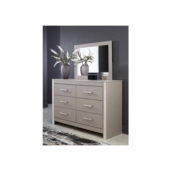 Crafted with engineered wood and decorative laminate, this dresser offers the perfect balance of durability and style. Six smooth-gliding drawers provide ample storage, each lined with a faux linen laminate interior for a clean, polished finish. The mirror effortlessly attaches to the back of the dresser and can also be mounted horizontally or vertically to suit your space.