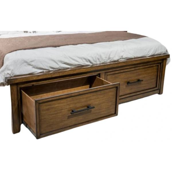Crafted from hardwood solids, mango wood veneer, and MDF substrate, this bed is built to last. The side rails feature laminated solid hardwood slat support rails for added durability. The two smooth-gliding drawers are designed with French/English dovetail construction and heavy-duty ball-bearing side glides, offering effortless operation and fully finished interiors.