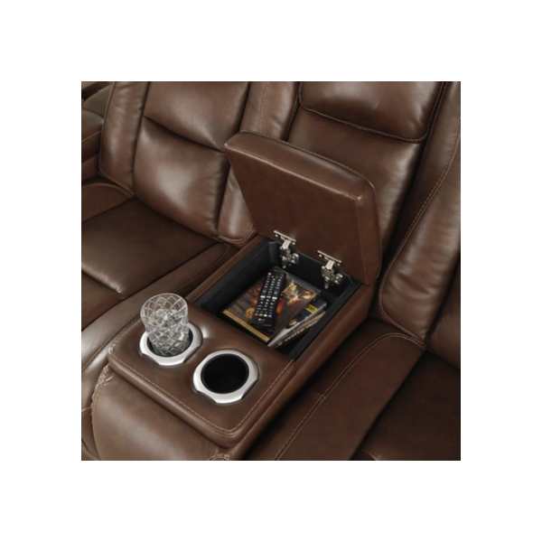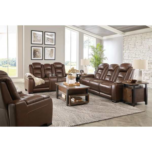 The Man-Den Sofa, Loveseat, and Recliner set is designed for those who crave both luxury and functionality. Inspired by sports car interiors, this power reclining package features premium leather and faux leather upholstery with a perforated automotive-style treatment. With one-touch controls, adjustable headrests and lumbar support, USB and wireless charging, and built-in storage, it offers ultimate relaxation with high-tech convenience. Whether you're kicking back for movie night or unwinding after a long day, this fully loaded set ensures you do so in style.