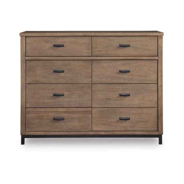 Discover the perfect blend of modern style and everyday functionality with the Tomtyn Dresser, available exclusively at Teletime. Designed with a sleek, minimalist aesthetic, this dresser brings an urban-chic vibe to your bedroom while ensuring practical storage solutions. Its light brown wood-tone finish, complemented by sturdy gunmetal gray metal legs, creates a striking contrast that enhances any contemporary space.