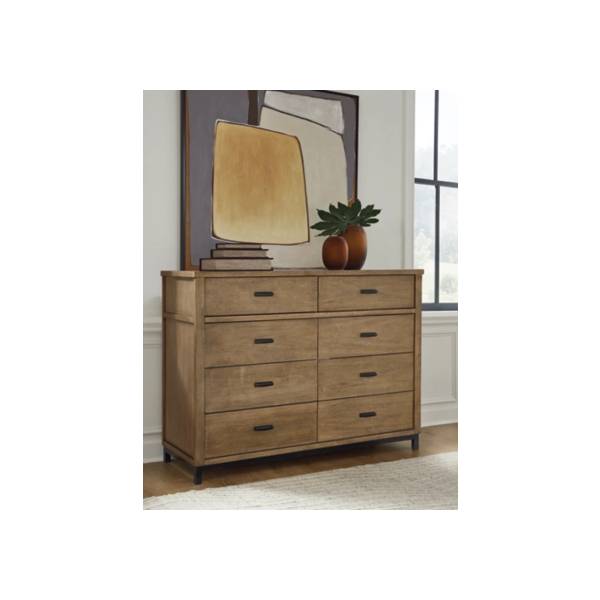Sleek design and contemporary style define the Tomtyn Dresser.Spacious compartments and durable construction provide practical storage.Its versatile functionality makes it an ideal centerpiece for modern interiors.