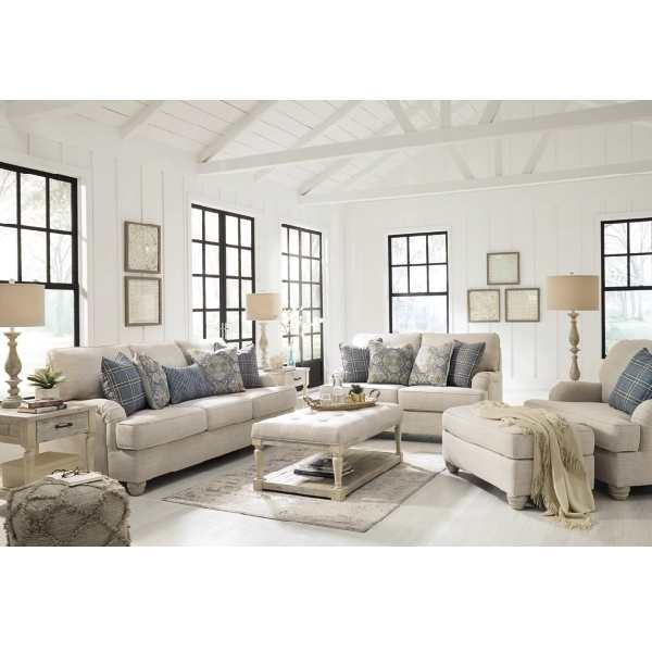 The Traemore Sofa, Loveseat, Chair, and Ottoman (SKU - PKG001041) set is designed to bring a touch of modern elegance to your living space. Featuring a clean-lined silhouette with a relaxed linen-weave upholstery, this collection exudes contemporary sophistication. The neutral tone of the fabric not only adds visual appeal but also offers a soft and comfortable seating experience. Its versatile design ensures it complements various interior décor styles, making it a valuable addition to any home.