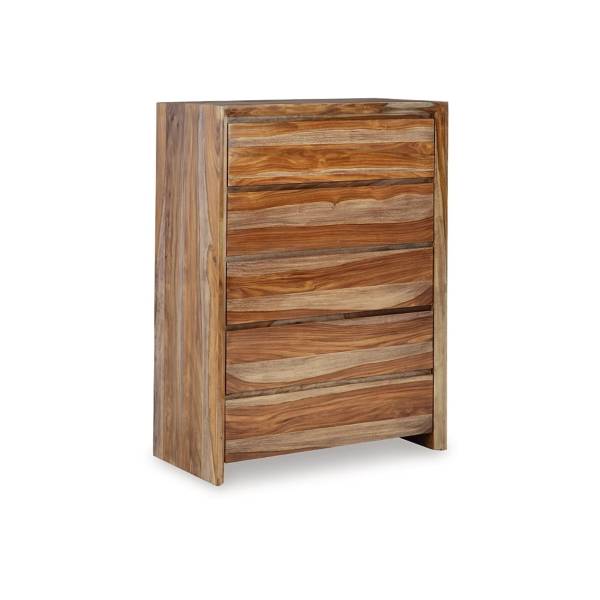 Made with durable hardwood solids and veneers, the Trillity Chest features a warm, rich finish that brings a sense of depth and warmth to your space. Each of its five drawers is designed with dovetail construction for superior strength and smooth gliding, ensuring that opening and closing them is a seamless experience. The top drawers are felt-lined, adding an extra touch of luxury to your storage solutions.