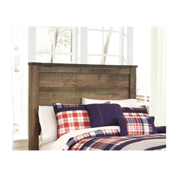 Capture the essence of rustic charm with the Trinell Full Panel Headboard, designed for those who appreciate the warmth and character of reclaimed barn wood. Its rich, weathered oak grain finish, combined with plank-style details and nailhead accents, brings an inviting farmhouse appeal to any bedroom. Whether for a cowboy at heart or someone who loves rustic aesthetics, this headboard delivers an effortlessly chic look with authentic craftsmanship.
