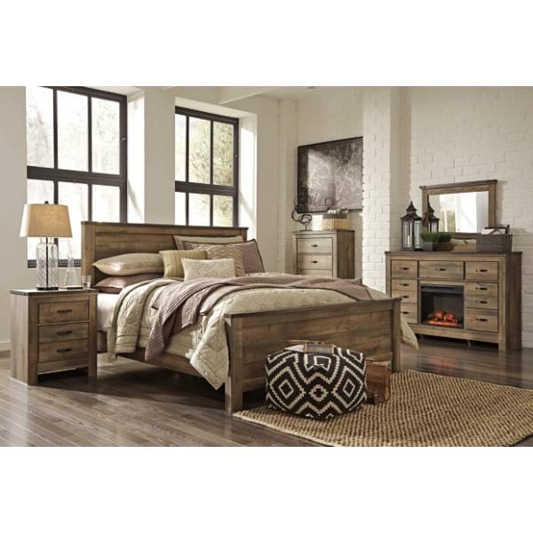 The Trinell Full Panel Bed combines rustic charm with a spacious and durable design, making it a lasting addition to any bedroom. Its sturdy construction ensures long-term use, while the charming details enhance the overall aesthetic. Perfect for those seeking both style and functionality.