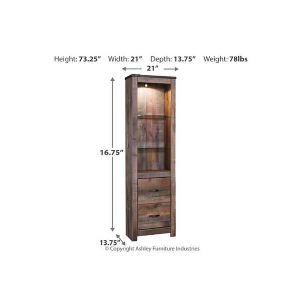 Featuring ultra-clean lines, this piece seamlessly transitions between country and city styles. It includes one adjustable shelf and two adjustable glass shelves for versatile storage. LED lighting enhances your display with a modern touch.