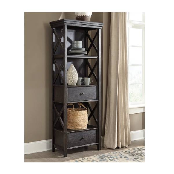 Invite warmth into your home with this dining room display cabinet, designed in a trend-right urban farmhouse style. The rich black finish and textured surface offer a sophisticated look.