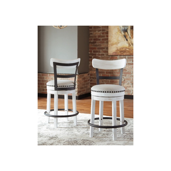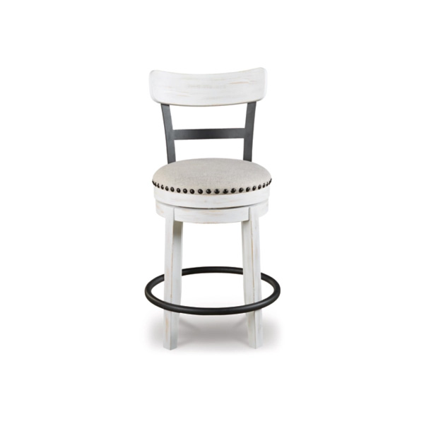 Built for stability, the Valebeck barstool includes a well-balanced structure with a built-in footrest, providing added support and relaxation. Its neutral tones and versatile design make it an ideal fit for various home décors, from modern rustic to classic farmhouse. Whether entertaining guests or enjoying everyday meals, this barstool delivers a stylish, comfortable, and long-lasting seating solution.