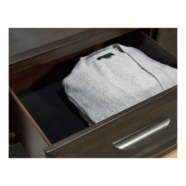 Constructed from select solid wood components, engineered wood veneer, and MDF substrates, this dresser is built for durability and elegance. Seven smooth-gliding drawers offer ample space for organizing your wardrobe and linens, with dovetail construction and center mount metal guides ensuring lasting performance. Felt-lined top drawers provide an added touch of luxury for delicate items, while sleek metal bar pulls elevate the overall aesthetic with a modern edge.