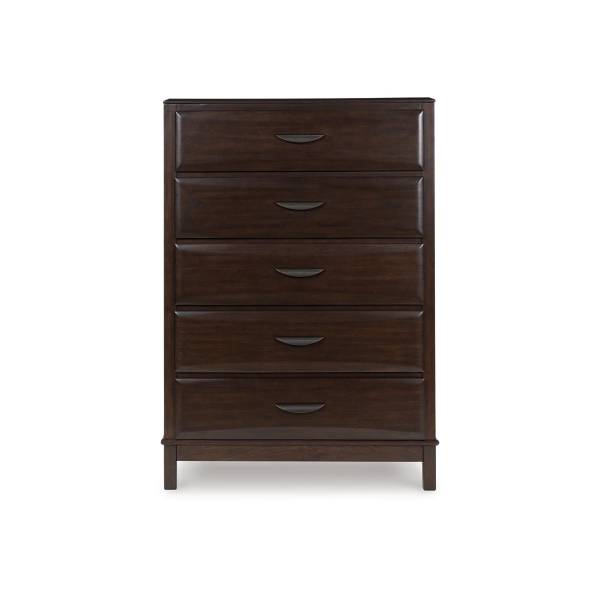 Whether you're revamping your bedroom or adding a touch of elegance to your space, the Vanmore Five Drawer Chest seamlessly combines functionality with contemporary style. The thoughtful craftsmanship and polished design details elevate your living space, making everyday storage an elegant experience. Available exclusively at Teletime, this chest embodies timeless sophistication and practical convenience for the modern homeowner.