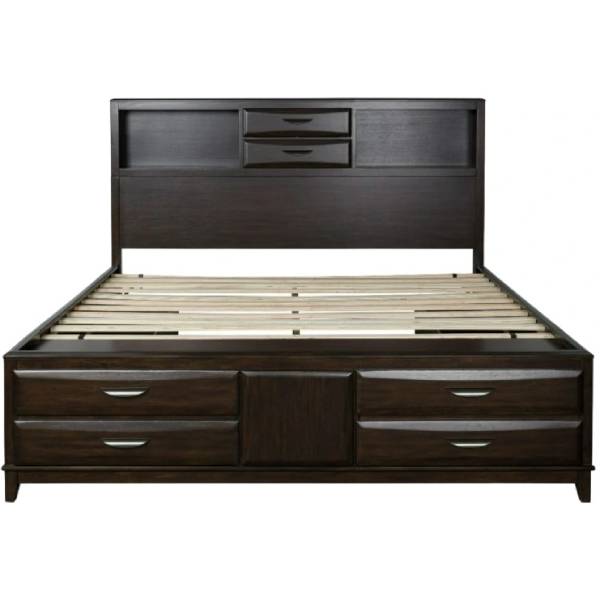 The Vanmore King Storage Bed effortlessly blends modern style with unbeatable functionality. This bed is designed to create a chic, contemporary retreat while providing ample storage to keep your bedroom organized and clutter-free. Thoughtfully crafted with a rich merlot finish, the bed features a storage headboard, footboard, and side rails, offering convenient space for your essentials.