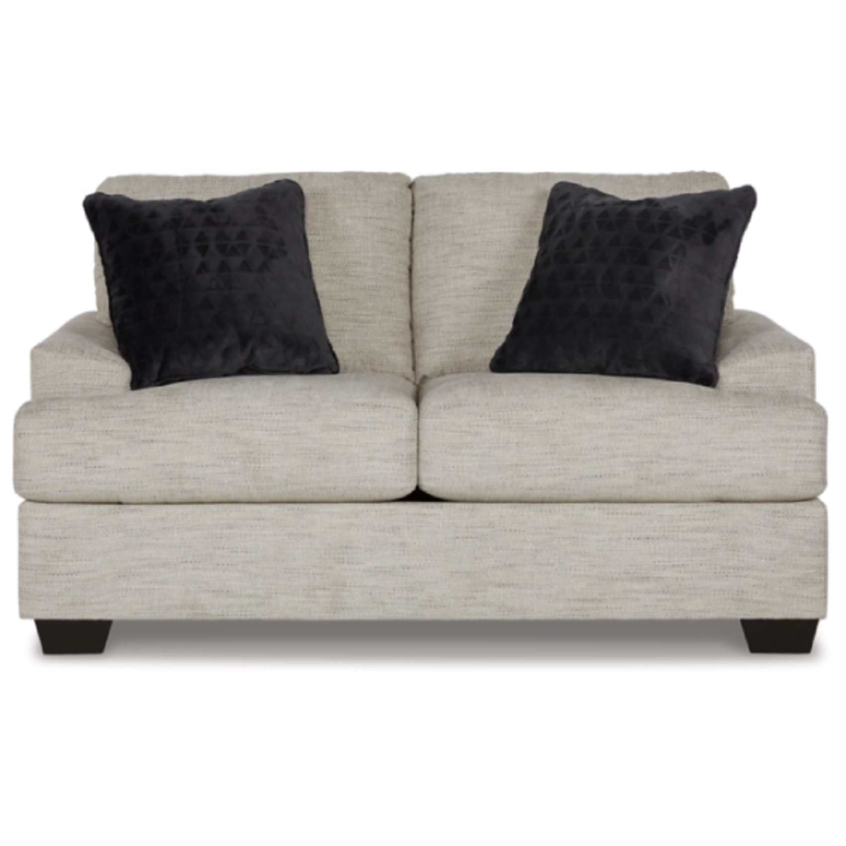 The Vayda Sofa, Loveseat, Chair, and Ottoman set (SKU - PKG015020) epitomizes modern living with its sleek design and inviting comfort. Created to be the centerpiece of contemporary interiors, each piece in the Vayda collection is meticulously crafted to balance aesthetic appeal with everyday practicality. The set features a refined, minimalist silhouette accentuated by soft, high-quality upholstery and generously padded cushions that offer both support and indulgence.