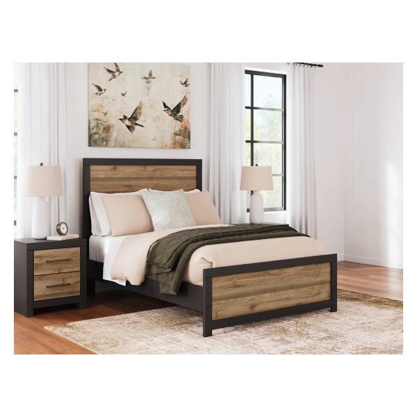 The Vertani Full Panel Bed combines casual elegance and functional design, making it a charming addition to your bedroom. With a two-tone finish that blends a matte black frame and a rich honey brown replicated walnut grain, this bed delivers a modern aesthetic with a touch of warmth. Its clean lines and sophisticated simplicity ensure it seamlessly complements a variety of bedroom décors, adding a relaxed yet polished vibe to your space.