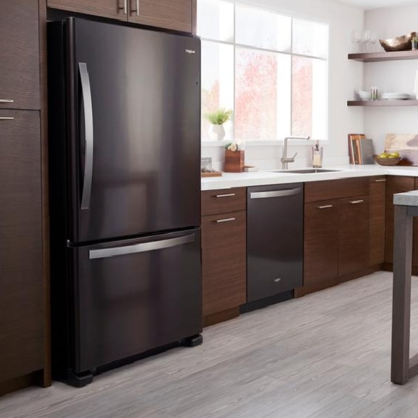 Whirlpool WRB322DMHV Bottom Freezer Refrigerator, 33 inch Width, ENERGY STAR Certified, 21.9 cu. ft. Capacity, Black Stainless Steel colour