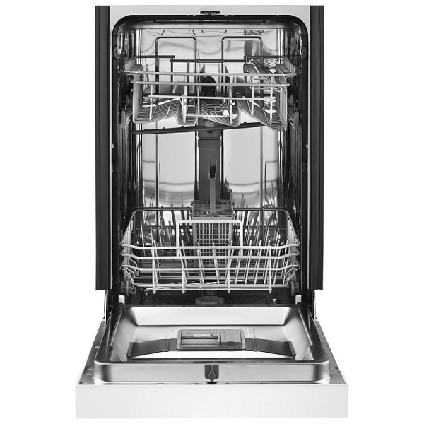 Introducing the Whirlpool WDPS5118PW Dishwasher, a compact 18-inch solution in elegant white that ensures spotless dishes even in smaller kitchen spaces. Featuring a dedicated spray arm in each rack, it maximizes cleaning performance without compromise.