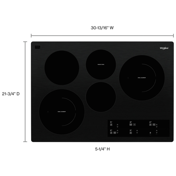 Whirlpool WCE97US0KB Electric Cooktop, 30 inch Exterior Width, 5 Burners, Black colour