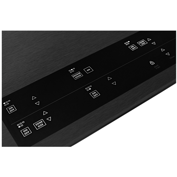 This cooktop is designed for flexible installation, allowing you to choose between a 30 or 40 amp hookup without the need for rewiring. The five-element cooktop offers independent cooking zones, including a 6-inch and 8-inch extra element, perfect for small dishes like sauces and sides.