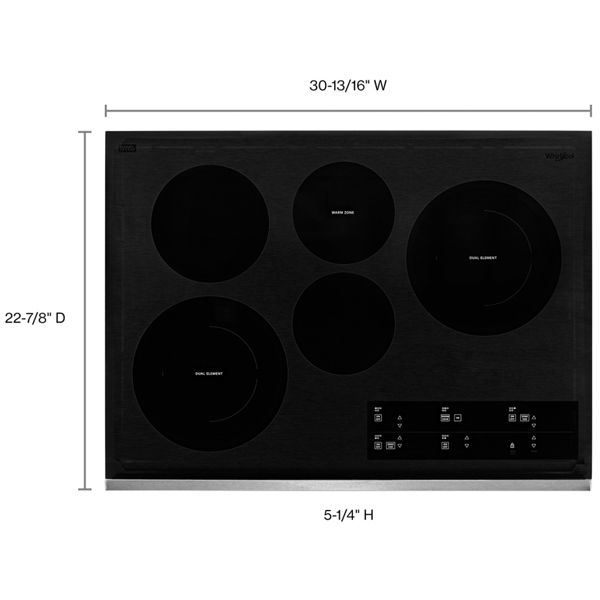 Whirlpool WCE97US0KS Electric Cooktop, 30 inch Exterior Width, 5 Burners, Black / Stainless Steel colour