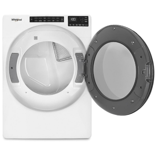 The Whirlpool YWED5605MW Dryer excels with advanced moisture sensing technology, which intelligently monitors moisture levels in your clothes to adjust drying time precisely. This ensures optimal drying results while preventing over-drying and conserving energy, contributing to lower utility bills.