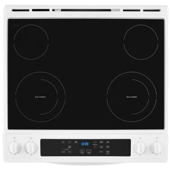 Whirlpool YWEE515S0LW Electric Range, 30 inch Exterior Width, Self Clean, 4 Burners, 4.8 cu. ft. Capacity, Storage Drawer, 1 Ovens, White colour