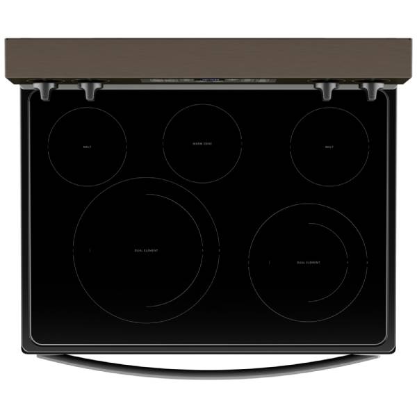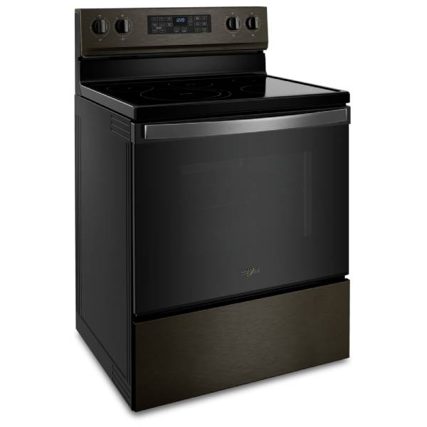 Whirlpool YWFE550S0LV Electric Range – 30" Exterior Width, Self Clean, Convection, 5 Burners, 5.3 cu. ft. Capacity, Storage Drawer, Air Fry, 1 Oven, Black Stainless Steel Color.