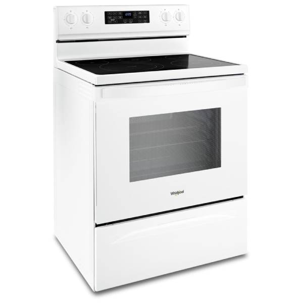 Whirlpool YWFE550S0LW Electric Range, 30 inch Exterior Width, Self Clean, Convection, 5 Burners, 5.3 cu. ft. Capacity, Storage Drawer, Air Fry, 1 Ovens, White colour