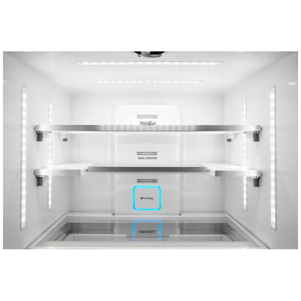 With the Panoramic LED Lighting, you can quickly find food with undershelf lighting that reduces shadows and keeps everything in sight. The Whirlpool WRF954CIHV also boasts a Pizza Pocket for storing frozen pizzas upright, a Platter Pocket to keep wide, flat items like brownie pans and pizza boxes safe from stacking, and a Triple-Tier Freezer Storage for easy organization of frozen foods.