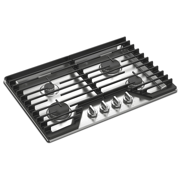 Whirlpool WCGK5030PS Gas Cooktop, 30 inch Exterior Width, 4 Burners, Stainless Steel colour