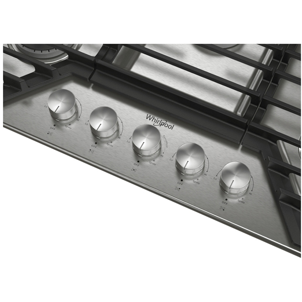Whirlpool WCGK7030PS Gas Cooktop, 30 inch Exterior Width, 5 Burners, Stainless Steel colour