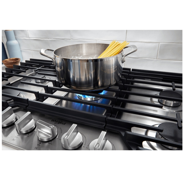 Compatible with select Whirlpool® Single Wall Ovens, this cooktop offers flexible installation options, whether above a wall oven or on its own. This cooktop combines style, performance, and convenience, making it an excellent addition to any kitchen.