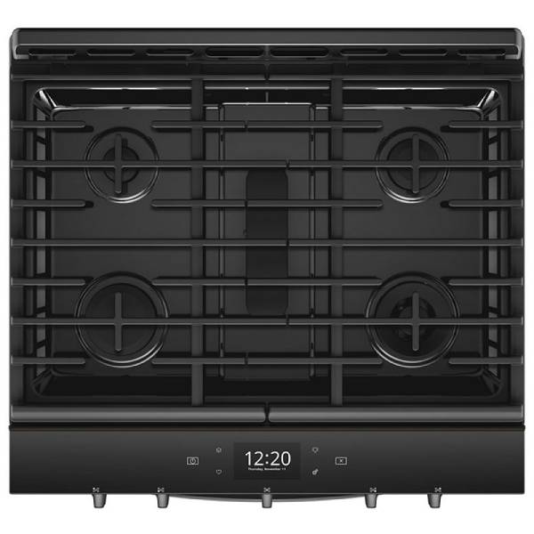 Experience exceptional cooking versatility with the Whirlpool WEG750H0HV Gas Range. Featuring a 30-inch exterior width and a sleek black stainless steel finish, this slide-in range combines modern design with powerful functionality.