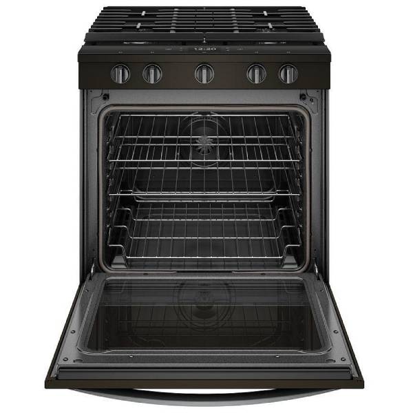 Whirlpool WEG750H0HV Gas Range, 30 inch Exterior Width, Self Clean, Convection, 5 Burners, 5.8 cu. ft. Capacity, Storage Drawer, Air Fry, 1 Ovens, Black Stainless Steel colour True European Convection