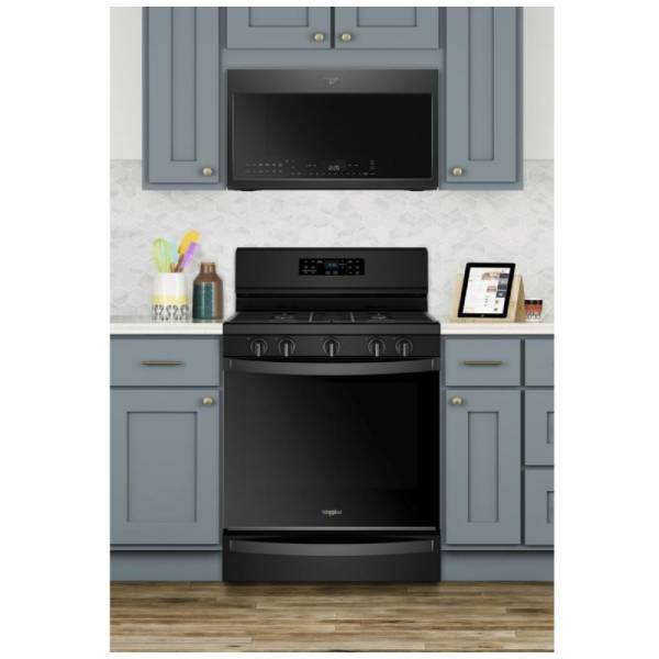 Whirlpool WFG775H0HB Gas Range, 30 inch Exterior Width, Self Clean, Convection, 5 Burners, 5.8 cu. ft. Capacity, Storage Drawer, 1 Ovens, Black colour