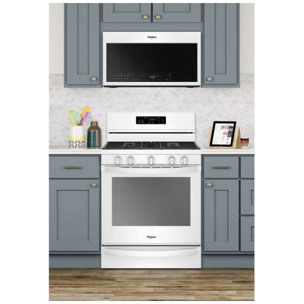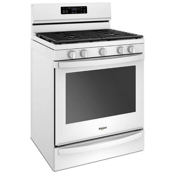 Whirlpool WFG775H0HW Gas Range, 30-inch Exterior Width, Self Clean, Convection, 5 Burners, 5.8 cu. ft. Capacity, Storage Drawer, 1 Oven, White