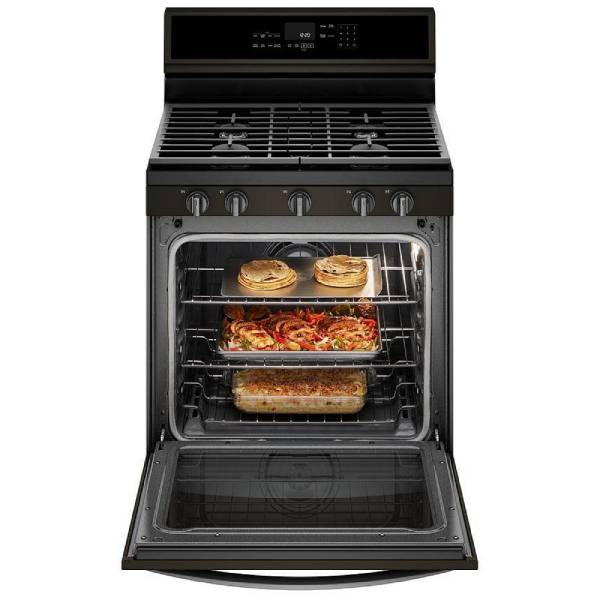Whirlpool WFG975H0HV Gas Range, 30 inch Exterior Width, Self Clean, Convection, 5 Burners, 5.8 cu. ft. Capacity, Storage Drawer, 1 Ovens, Black Stainless Steel colour True European Convection