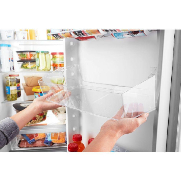 Key Features: Experience the convenience of adjustable gallon door bins, providing flexibility for storing large containers like milk and juice cartons. Illuminate your interior with energy-efficient LED lighting, ensuring clear visibility of your food items at all times. Enjoy the sleek and modern design enhanced by hidden hinges, ensuring smooth and quiet operation while maintaining clean lines. Effortlessly control the temperature with electronic temperature controls, preserving your food's freshness with precision. Optional ice maker availability offers the convenience of readily available ice for all your entertaining needs.