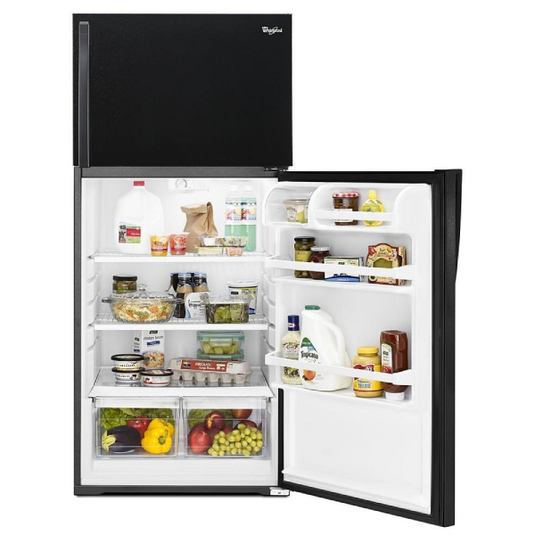 Upgrade your kitchen with the Whirlpool WRT134TFDB Top Freezer Refrigerator and experience the perfect blend of functionality and efficiency.