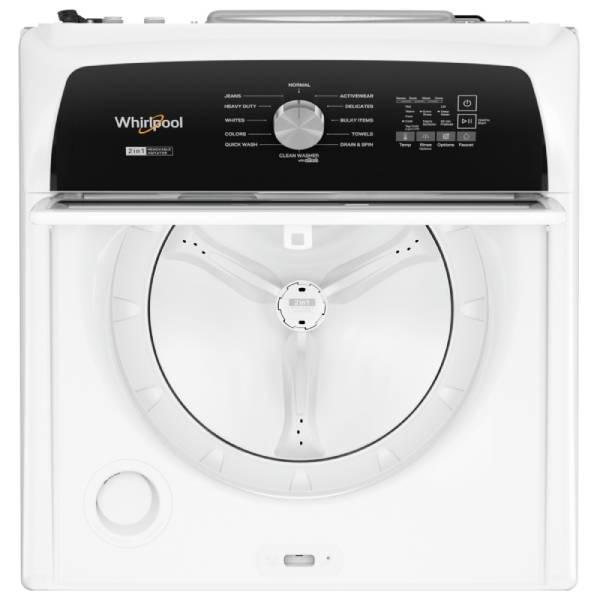 The standout feature of the WTW5057LW is its 2-in-1 removable agitator. This unique design allows you to choose between a traditional agitator for robust cleaning or a gentler impeller-based wash, providing flexibility for various fabric types in your laundry.