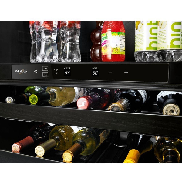 - Dual-Temperature Controlled Zone: Customize two distinct temperature zones to store your beverages perfectly. Maintain wine on the lower racks at 42–55°F and other beverages on the upper racks at 33–42°F.