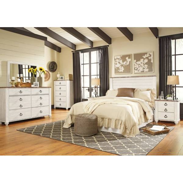 The Willowton Five Drawer Chest offers a harmonious blend of style and practicality. With ample storage space and durable craftsmanship, it ensures seamless organization while elevating your room's aesthetic. Its versatile design makes it a functional and timeless addition to any bedroom.