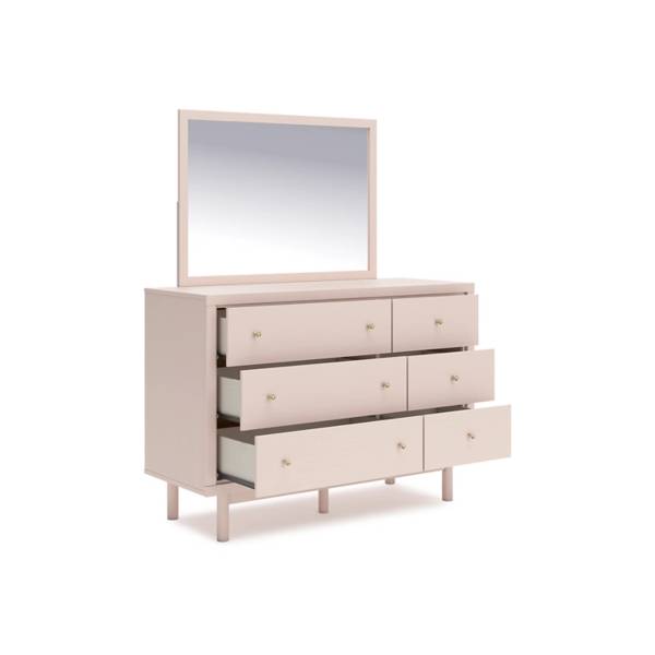 Delightfully modern with a soft, charming touch, the Wistenpine Dresser and Mirror set is a perfect addition to any chic child’s bedroom—available now at Teletime. Designed to blend effortlessly with your home’s contemporary style, this set features a subtle blush finish over a replicated pecan wood grain, bringing a playful yet refined aesthetic to the room.