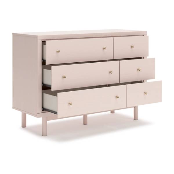 The Wistenpine Six Drawer Dresser combines modern aesthetics with functionality. Its subtle blush finish and six smooth-gliding drawers offer ample storage space. Crafted from engineered wood and decorative laminate, it balances affordability with durability