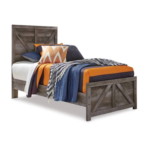 Bring a touch of modern rustic charm to your home with the Wynnlow Twin Crossbuck Panel Bed, exclusively at Teletime. This striking bed merges contemporary minimalist style with farmhouse flair, creating a warm and inviting space for your child or guest. The clean, crisp profile is enhanced by a rich, replicated oak grain that features thick planks and a weathered gray finish, adding depth and authenticity to your bedroom.