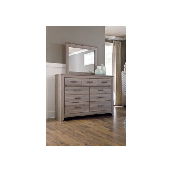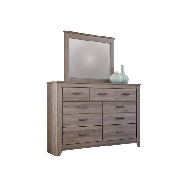 Bring home a perfect blend of urban sophistication and relaxed elegance with the Zelen Dresser and Mirror set, exclusively at Teletime. Designed to complement contemporary interiors, this set showcases crisp, clean lines with a warm gray vintage finish enhanced by a subtle white wax effect that beautifully highlights the replicated oak grain. The dresser is adorned with antiqued pewter-tone hardware, adding a touch of industrial charm to its refined profile. Featuring seven smooth-gliding drawers in varied sizes, it offers ample space to keep your clothing and essentials organized with ease. Crafted from durable engineered wood and decorative laminate, this set combines long-lasting strength with stylish appeal. The matching mirror effortlessly attaches to the back of the dresser, completing the look with functional flair. Whether you're refreshing your room or completing your dream bedroom, the Zelen dresser and mirror set from Teletime is the ideal choice for a space that exudes effortless elegance.