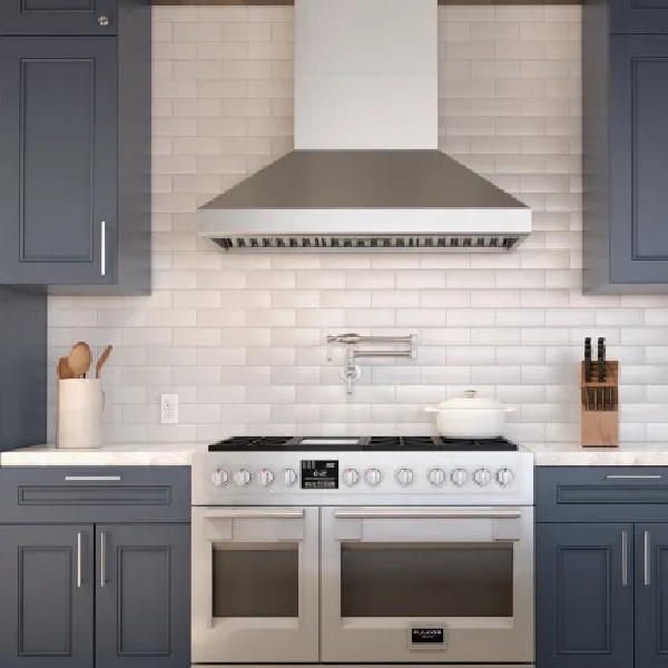 48-Inch Wall-Mount Hood with PowerWave™ Blower, Airflow Control Technology™, Grease Collection Tray, Directional LED Lighting, Electronic LCD Controls, CleanAir Function, and Professional Baffle Filters