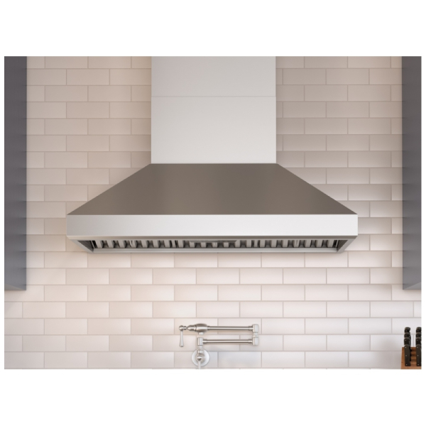 54-Inch Wall Hood with PowerWave™ Blower, Airflow Control Technology™, Grease Collection Tray, Directional LED Lighting, Electronic LCD Controls, CleanAir Function, and Professional Baffle Filters