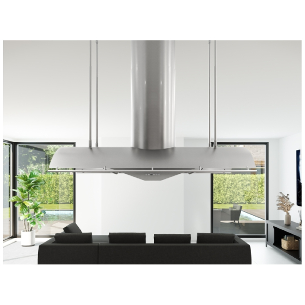 The Zephyr Trapeze brings a breath of fresh air to kitchen design with its sleek, contemporary aesthetic. This 48-inch island range hood floats effortlessly above your cooking area, thanks to its streamlined suspension structure and graceful curved canopy. The Trapeze combines form and function with its advanced LumiLight LED lighting system, offering directional illumination and three lighting levels to enhance your kitchen experience.