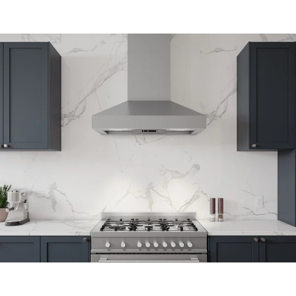 Elevate your kitchen with the Zephyr Podesta Wall Mount Range Hood. At 30 inches wide, this stylish range hood combines professional performance with modern aesthetics, featuring a powerful 600 CFM blower and a sleek, minimalist design. The Podesta enhances your cooking experience with its advanced features and sophisticated look, making it a perfect fit for any kitchen design.